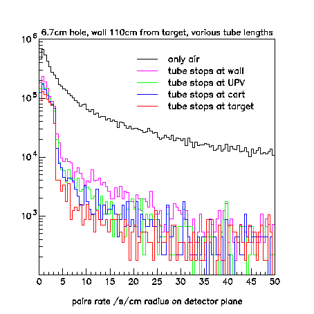 (8mm + 16mm) CLAS target Helium tube (25cm diameter) Shield wall (6.7cm hole 10cm thick) (with helium tube up to wall 110cm upstream from target) No sweeping magnet after CLAS |